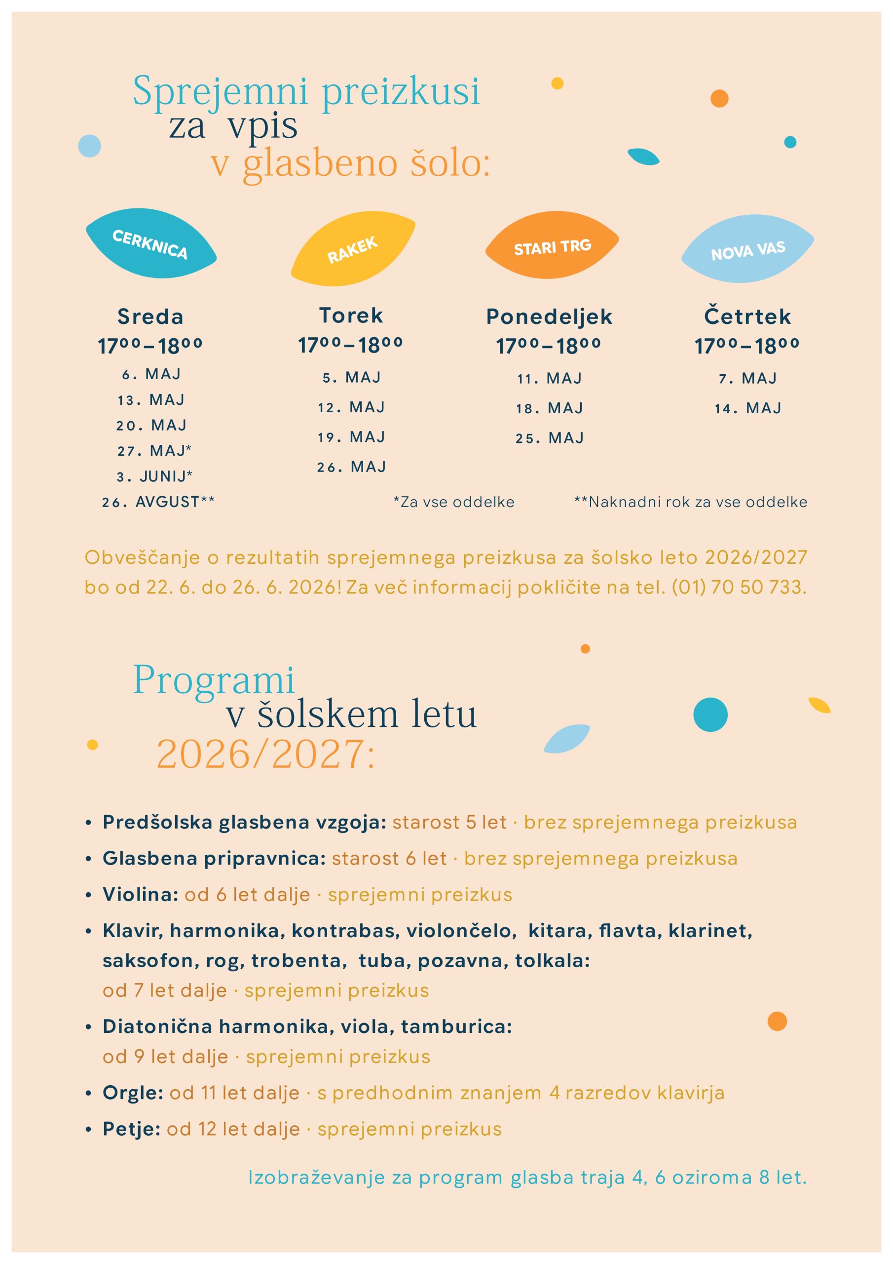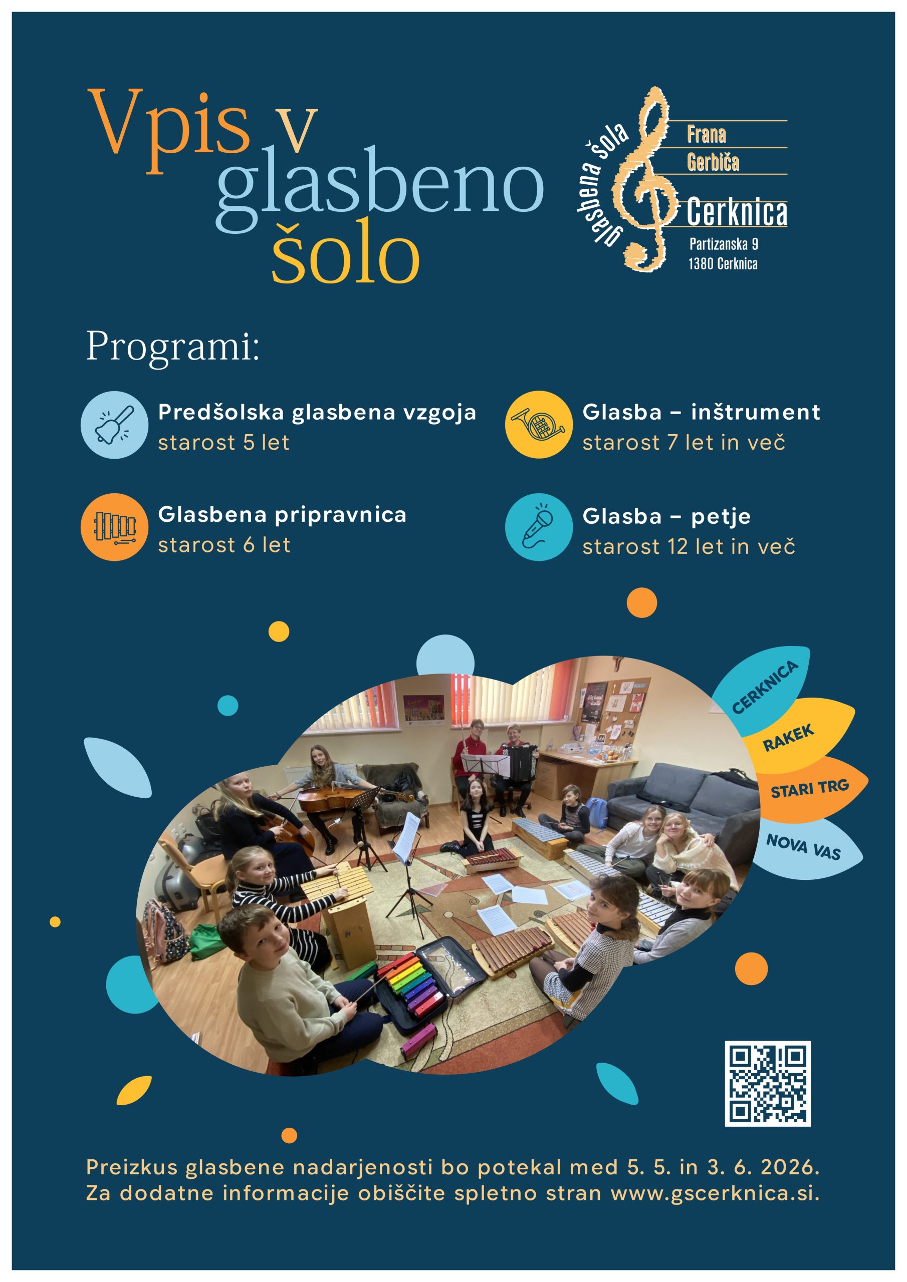 Vpis v Glasbeno šolo Cerknica za šolsko leto 2026/27