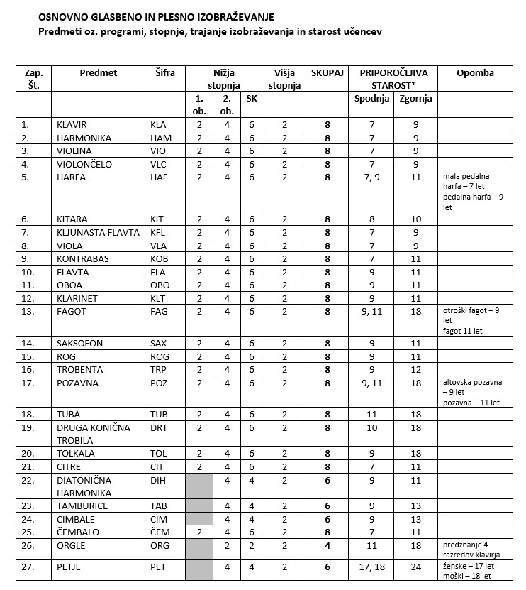 • program glasbena pripravnica – GP (starost 6 let),